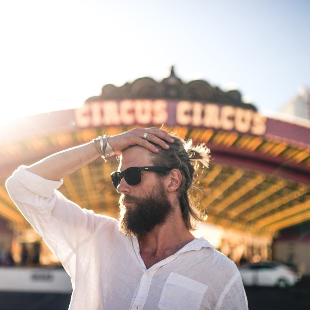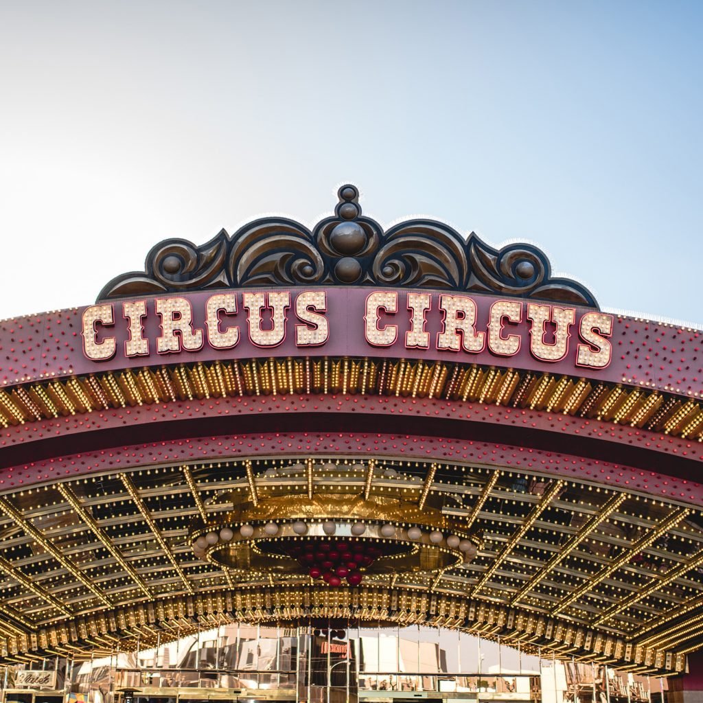 Being on a road trip budget we’d parked in the RV parking at Circus Circus which is just a hot concrete slab at the end of the strip with a pink and white mock-tent rotunda in the middle with 2 working washing machines, watched over by a giant demon clown sign rocking the diamond-eyed look of the last person to leave a warehouse party.